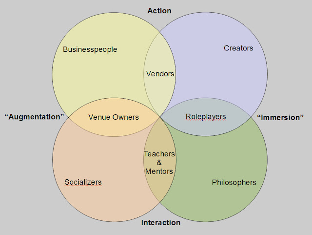 As a good Venn Buddhist and VizThinker, I thought through the concept using a chart. One axis reflects the number of human identity-centric relationships and business dealings. The other is for one's avatar identity-centric activities.